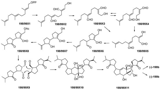 Figure 14. Plausible biosynthetic pathway of (–)-vannusals A 198b and B 199b.