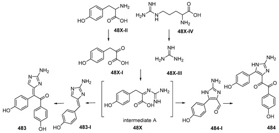 Figure 29. The plausible biosynthetic pathway of lissodendrins A 483 and B 484.