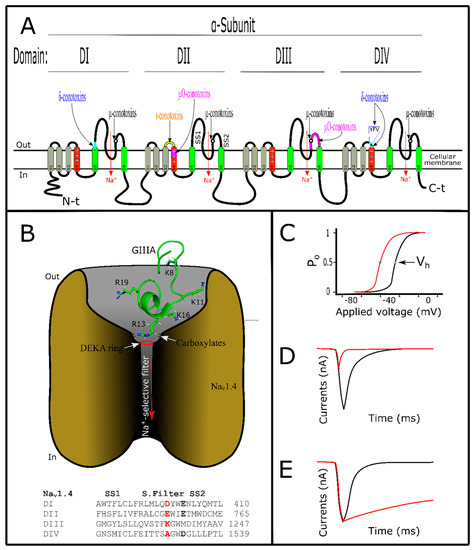 - Catterall, W.A. Structure and function of voltage-gated sodium channels at atomic resolution. Exp. Physiol. 2014, 99, 35–51. [Google Scholar] [CrossRef] [PubMed]