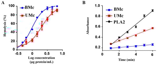 Cytolytic activity of the soluble proteomes of UMc and BMc.