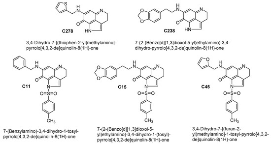 Chemical structures of the test compounds, C278, C238, C11, C15 and C45.