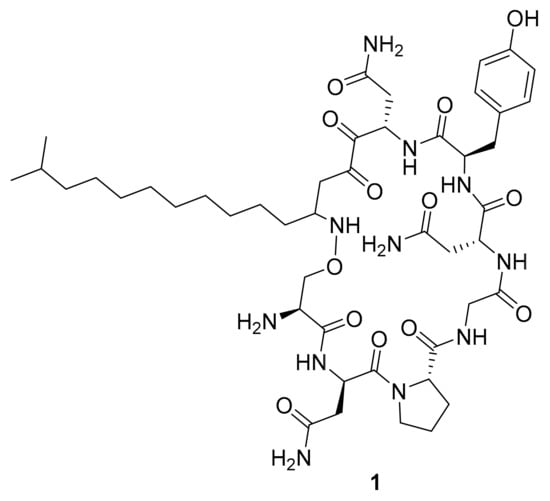 Structure of the lipopeptide iturin A (1).