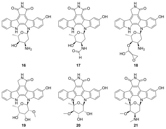 Structures of staurosporine derivatives 16–21.