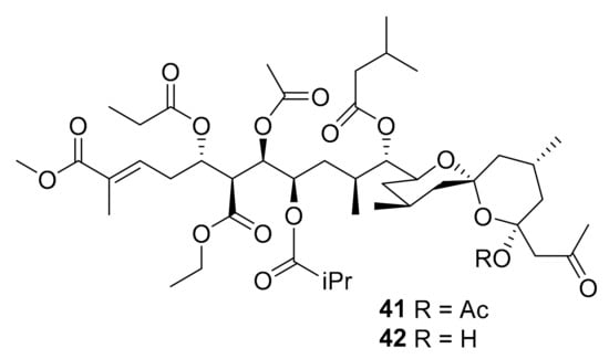Structures of didemnaketals D (41) and E (42).