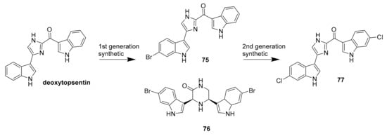 Synthetic analogues (75–77) of the marine bisindole alkaloid deoxytopsentin.