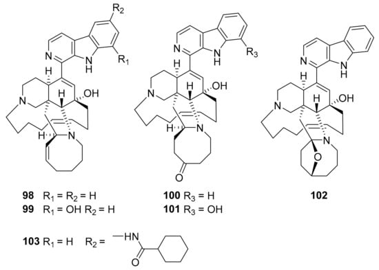 Structures of compounds 98–103.