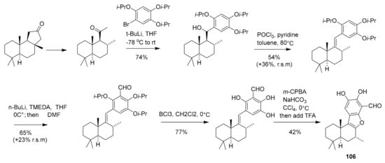 - Zong, Y.; Wang, W.; Xu, T. Total Synthesis of Bioactive Marine Meroterpenoids: The Cases of Liphagal and Frondosin B. Mar. Drugs 2018, 16, 115. [Google Scholar] [CrossRef]