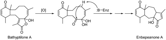 Hypothetical biochemical conversion of briarane bathyptilone A (1) into the enbepeanone skeleton.