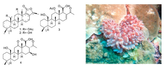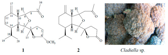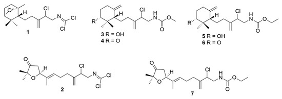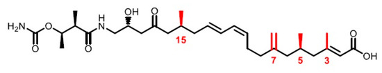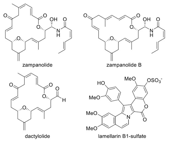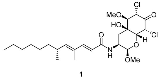- Nuzzo, G.; De Araújo Gomes, B.; Gallo, C.; Amodeo, P.; Sansone, C.; Pessoa, O.D.L.; Manzo, E.; Vitale, R.M.; Ianora, A.; Santos, E.A.; et al. Potent Cytotoxic Analogs of Amphidinolides from the Atlantic Octocoral Stragulum bicolor. Mar. Drugs 2019, 17, 58.