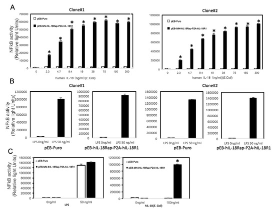 2.2. Establishment of Cells Specifically Monitor IL-18- Induced NFkB Activation