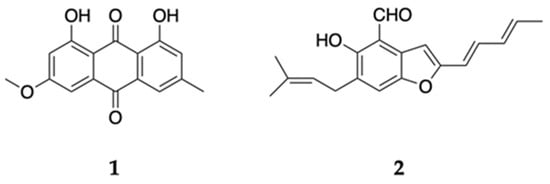 - Wijesekara, I.; Zhang, C.; Ta, Q.V.; Vo, T.S.; Li, Y.X.; Kim, S.K. Physcion from marine-derived fungus Microsporum sp. induces apoptosis in human cervical carcinoma Hela cells. Microbiol. Res. 2014, 169, 255–261. [Google Scholar] [CrossRef] [PubMed]