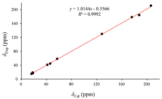 Linear regression analysis of the experimental 13C NMR data of 2 and calculated 13C NMR chemical shift data of 2a.