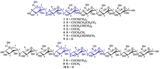 - Liu, H.L.; Xie, D.A.; Cheng, W.B.; Tao, W.Q.; Wang, Y. Acylated aminooligosaccharides with inhibitory effects against α-amylase from Streptomyces sp. HO1518. Mar. Drugs 2018, 16, 403. [Google Scholar] [CrossRef]