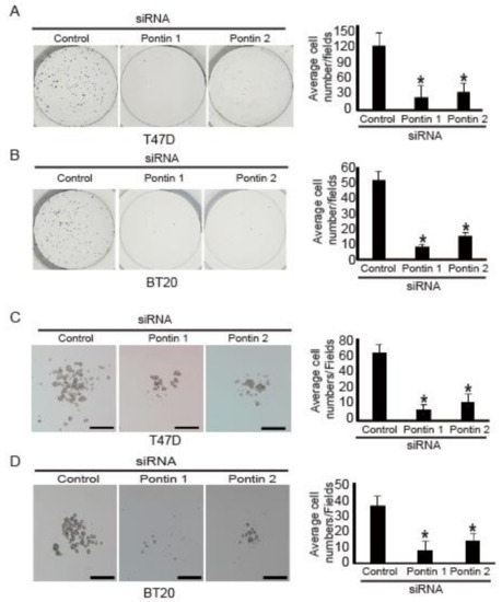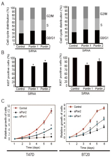 2.2. Pontin Knockdown Attenuates the Proliferation of T47D and BT20 Breast Cancer Cells