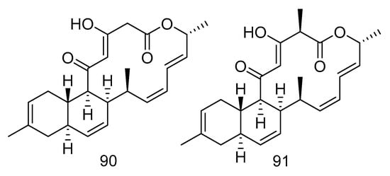 Botryotin A (79) (Figure 21) was isolated from Botryotinia fuckeliana derived from deep-sea water of the Western Pacific Ocean, which showed moderate antiallergic effect with the IC50 value of 0.2 mM [].