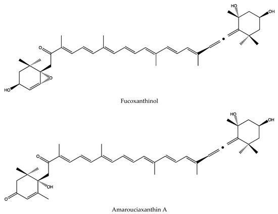 Molecular formula of fucoxanthinol and amarouciaxanthin A.