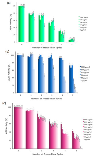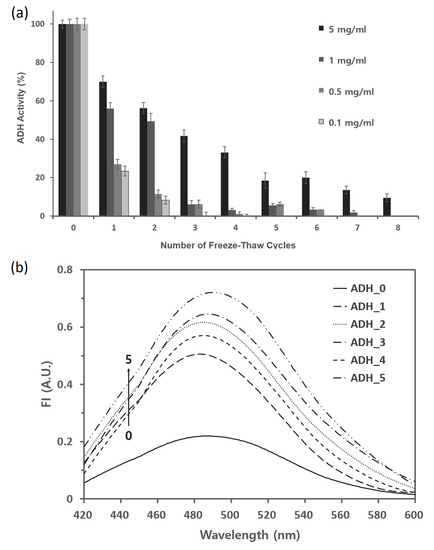 2.2. ADH Is Susceptible to the Repeated Freeze–Thaw Cycles