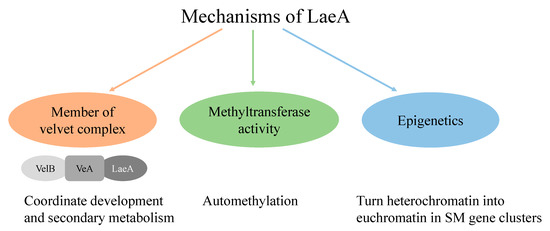 - Patananan, A.N.; Palmer, J.M.; Garvey, G.S.; Keller, N.P.; Clarke, S.G. A Novel Automethylation Reaction in the Aspergillus Nidulans LaeA Protein Generates S-Methylmethionine. J. Biol. Chem. 2013, 288, 14032–14045. [Google Scholar] [CrossRef] [PubMed]