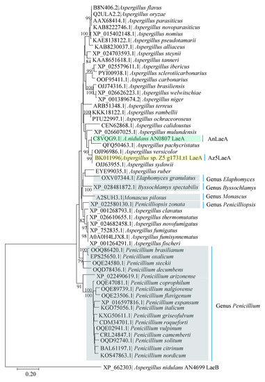 2.1. Bioinformatics Analysis of Az5LaeA and AnLaeA