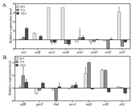 - Palmer, J.M.; Theisen, J.M.; Duran, R.M.; Grayburn, W.S.; Calvo, A.M.; Keller, N.P. Secondary Metabolism and Development is Mediated by LlmF Control of VeA Subcellular Localization in Aspergillus Nidulans. PLoS Genet. 2013, 9, e1003193. [Google Scholar] [CrossRef]