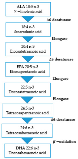 - Gibson, R.A.; Muhlhausler, B.; Makrides, M. Conversion of linoleic acid and alpha-linolenic acid to long-chain polyunsaturated fatty acids (LCPUFAs), with a focus on pregnancy, lactation and the first 2 years of life. Matern. Child Nutr. 2011, 7, 17–26. [Google Scholar] [CrossRef]