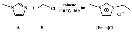 - Mu, X.; Jiang, N.; Liu, C.; Zhang, D. New Insight into the Formation Mechanism of Imidazolium-Based Ionic Liquids from N-Alkyl Imidazoles and Halogenated Hydrocarbons: A Polar Microenvironment Induced and Autopromoted Process. J. Phys. Chem. A 2017, 121, 1133–1139. [Google Scholar] [CrossRef]