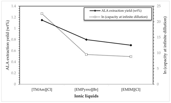 2.1.1. Effect of Carbon Chain Length of Cation-Based ILs on the ALA Extraction Capacity