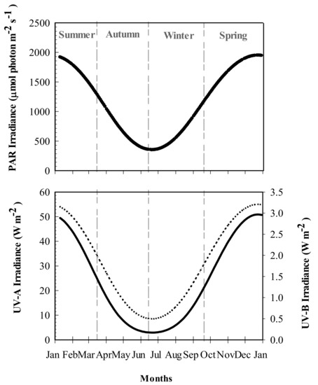 3.1. The Environmental Context and Seasonal Variation of MAAs