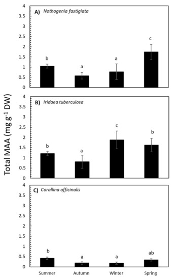 2.2. Seasonal Variation in Total MAA Content and MAA Composition
