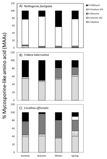 APA StyleJofre, J., Celis-Plá, P. S. M., Figueroa, F. L., & Navarro, N. P. (2020). Seasonal Variation of Mycosporine-Like Amino Acids in Three Subantarctic Red Seaweeds. Marine Drugs, 18(2), 75. https://doi.org/10.3390/md18020075