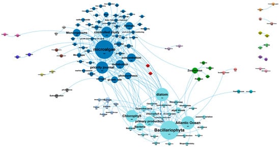The EnhanceMicroalgae project is a transnational and inter-regional Atlantic project that aims to evaluate the potential of the European AA in the microalgae industrial sector [7] (https://www.enhancemicroalgae.eu/). To compare on a global scale, 9% of world publications came from the AA, 15% of world authors were from the AA, and 37% of affiliations working in the field of microalgae were located in the AA. In this section, the AA was compared with Europe for (i) the main concepts and topics of scientific publications, (ii) the national contribution to publications, (iii) the networks of collaborations by city and country, as well as (iv) the main journals and citations in the field of microalgae.