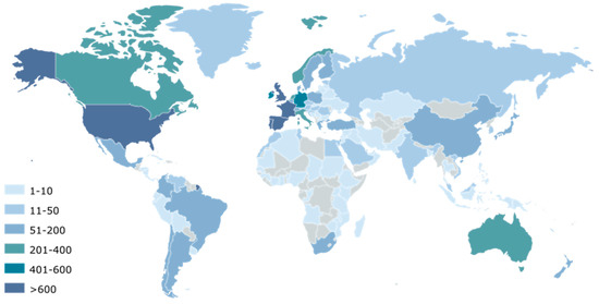 Within the European Union, countries producing the largest number of publications are France (5445), Germany (5258), Spain (4100), Italy (2852), Netherlands (2353), the United Kingdom (2030), Sweden (1654), Denmark (1446), Poland (1192), Belgium (1189), Portugal (1164), and Finland (904). In addition, between 400 and 600 scientific publications have been published by Greece (556), the Czech Republic (555), Austria (484), and Ireland (416). The production of scientific publications was lower for Switzerland (348), Croatia (343), Hungary (338), and Estonia (319).