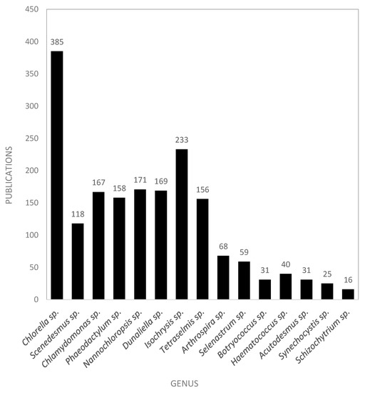 The following are available online at https://www.mdpi.com/1660-3397/18/2/79/s1, Figure S1–S14: Detailed study of associated and emerging concepts, scientific consortia working in Europe, research cities, temporal evolution of publications by country, top journals, citations, and top cited papers for the genera Scenedesmus sp., Chlamydomonas sp., Phaeodactylum sp., Nannochloropsis sp., Dunaliella sp., Tisochrysis sp., Tetraselmis sp., Arthrospira sp., Selenastrum sp., Botryococcus sp., Haematococcus sp., Acutodesmus sp., Synechocystis sp. and Schizochytrium sp.