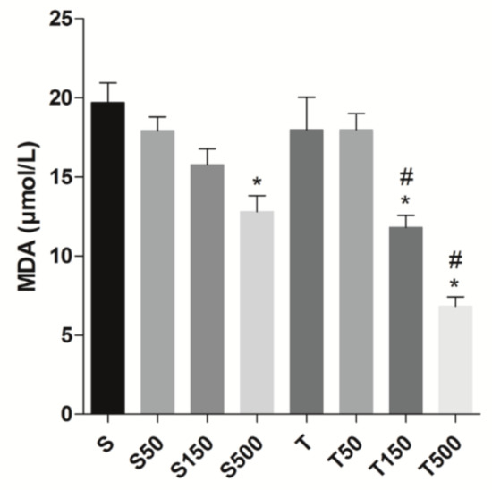 | S500 | 51.3 ± 4.5 * # | 1.63 ± 0.02 |