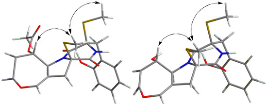 The Nuclear Overhauser Effect (NOE) Correlations for 1 and 2.