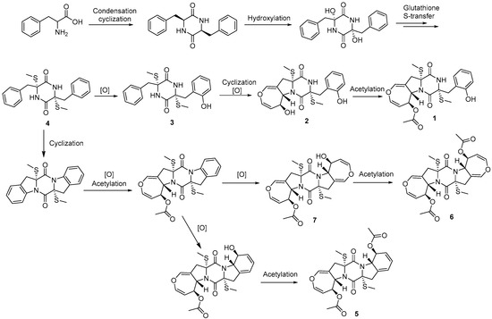 - Welch, T.R.; Williams, R.M. Epidithiodioxopiperazines. occurrence, synthesis and biogenesis. Nat. Prod. Rep. 2014, 31, 1376–1404. [Google Scholar] [CrossRef]