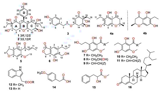Structures of compounds 1–16.