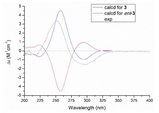 Experimental and calculated ECD spectra of 3.