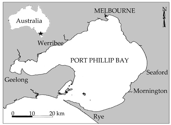 A number of reviews have also detailed the biologically active natural products that are sourced from marine organisms [6,7,8,9,10], highlighting marine organisms as an important resource for the production of new and unique compounds with potential medicinal value. Many of the compounds represented in Figure 1 have been isolated from sponges, ascidians and cyanobacteria. Marine macroalgae are underrepresented in the pharmaceutical pipeline despite the number of biologically active compounds. Marine algae have also been used in a number of other important areas including the food industry [11], agriculture [12] and as a source of third-generation bioplastics [13]. Compounds from marine algae have been shown to exhibit a number of biologically active properties such as anti-microbial [6,7,14], anti-cancer [15], anti-leishmanial [16], anti-inflammatory [17], anti-fouling [18] and anti-protozoal [19] activities. Historically, Australia has been an excellent source of novel marine invertebrate chemistry. Australia has the largest Exclusive Economic Zone (EEZ) on the planet, which is made up of several diverse marine ecoregions. As a source of novel chemistry, Australia’s EEZ has been prolific, with its contribution representing the third largest of newly discovered MNPs during the period 1965–2012, only behind Japan and China, respectively. Of interest is the marine ecoregion of Port Phillip Bay, located on the south eastern coast of Australia in the state of Victoria. During the period 1995–2012, this marine ecoregion has been the dominant source of unreported natural products located within Australia’s EEZ [20]. The primary reason for this being the large amount of habitat variety that is present in this Bay, such as intertidal sandy beaches, mangroves and rocky shores along with tidal habitats like sand beds, seagrass beds and rocky reefs. Port Phillip Bay, located on the southern shore of Victoria (Figure 2), has an area of approximately 2000 square kilometers and an average depth of 13 m. It represents a unique habitat, being shallow enough to be in the photic zone throughout and is known for the cleansing activities of the microphyto- and zoo-benthos and continues to be a region of Australia that yields new species. It is home to approximately 200 different species of macroalgae, a figure which is subject to change due to introduced species that originate from shipping within the Port) and is represented by all three major phyla, namely the brown (Ochrophyta), red (Rhodophyta) and the green algae (Chlorophyta).