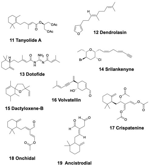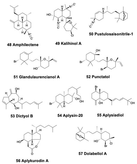 - Gross, H.; König, G.M. Terpenoids from marine organisms: Unique structures and their pharmacological potential. Phytochem. Rev. 2006, 5, 115–141. [Google Scholar] [CrossRef]