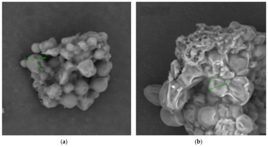 Dried samples of AGS and HGS were analyzed by scanning electron microscopy (SEM) using the ThermoFisher microscope model Phenom Pro Desktop SEM, having an electron optical magnification range: 80–150,000x; a resolution < 10 nm (BSED) and < 8 nm (SED); digital zoom: max 12x; acceleration voltages: default 5 kV, 10 kV, and 15 kV; vacuum modes: charge reduction mode (low vacuum mode)—high vacuum mode; and detector: BSD.