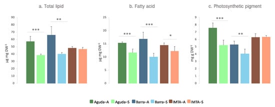 - Guschina, I.A.; Harwood, J.L. Algal Lipids and Effect of the Environment on their Biochemistry. In Lipids in Aquatic Ecosystems; Arts, M.T., Brett, M.T., Kainz, M.J., Eds.; Springer: New York, NY, USA, 2009; pp. 1–24. ISBN 978-0-387-88607-7. [Google Scholar]