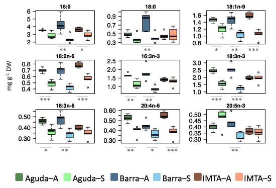 | 16:2 n-6 | 0.20 ± 0.01 | 0.14 ± 0.02 | 0.18 ± 0.03 | 0.13 ± 0.02 | 0.27 ± 0.01 | 0.14 ± 0.02 |