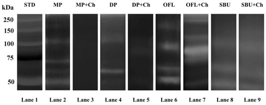 - Group 6 (Lane 6―OFL + Ch): DP was treated with 0.1% Ch and then mixed with 100 µL of OFL.