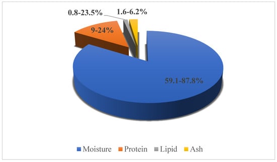 Fish is an important source of quality animal proteins (particularly the essential amino acids lysine and methionine). It has been reported that fish protein has a greater satiety effect than other sources of animal proteins like beef and chicken. Around 60% of people from developing countries depend upon fish for over 30% of their animal protein supplies [,]. Moreover, fish proteins are highly digestible as well as a rich source of peptides and essential amino acids that are limited in terrestrial meat proteins. Fish proteins have high biological values because of the presence of essential amino acids in good proportions [].