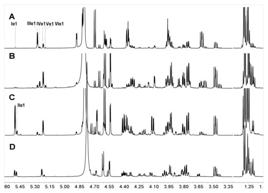 2.3. Analysis of Defucosylation of the Partial Fucosylated Products by 1H NMR