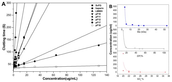 2.7. Effects of DF, Mw, and SO3- Content on APTT Prolongation Activity in Vitro