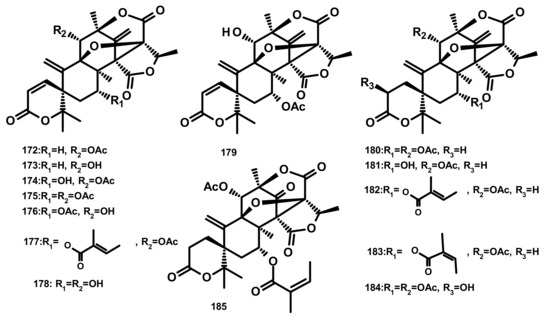 Chemical structures of austinoids 164–171.