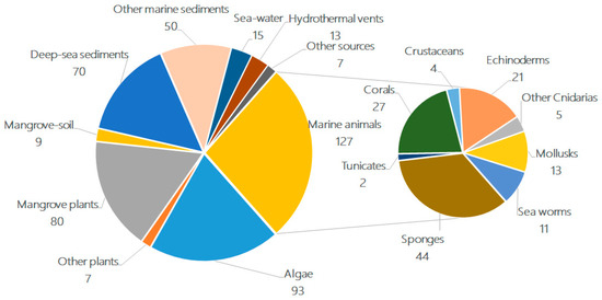 - Imhoff, J.F. Natural products from marine fungi—Still an underrepresented resource. Mar. Drugs 2016, 14, 19. [Google Scholar] [CrossRef] [PubMed]
