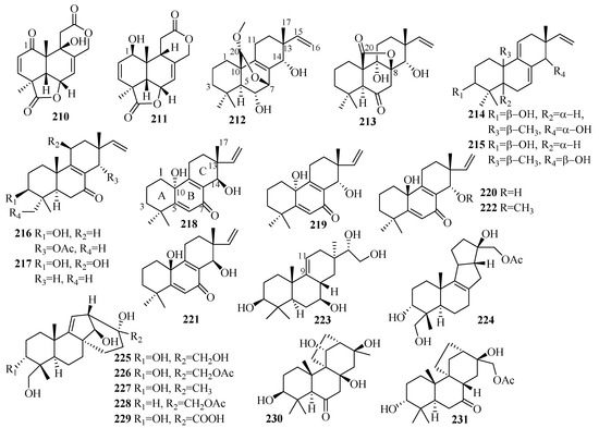 - Xia, X.; Qi, J.; Liu, Y.; Jia, A.; Zhang, Y.; Liu, C.; Gao, C.; She, Z. Bioactive isopimarane diterpenes from the fungus, Epicoccum sp. HS-1, associated with Apostichopus japonicus. Mar. Drugs 2015, 13, 1124–1132. [Google Scholar] [CrossRef] [PubMed]